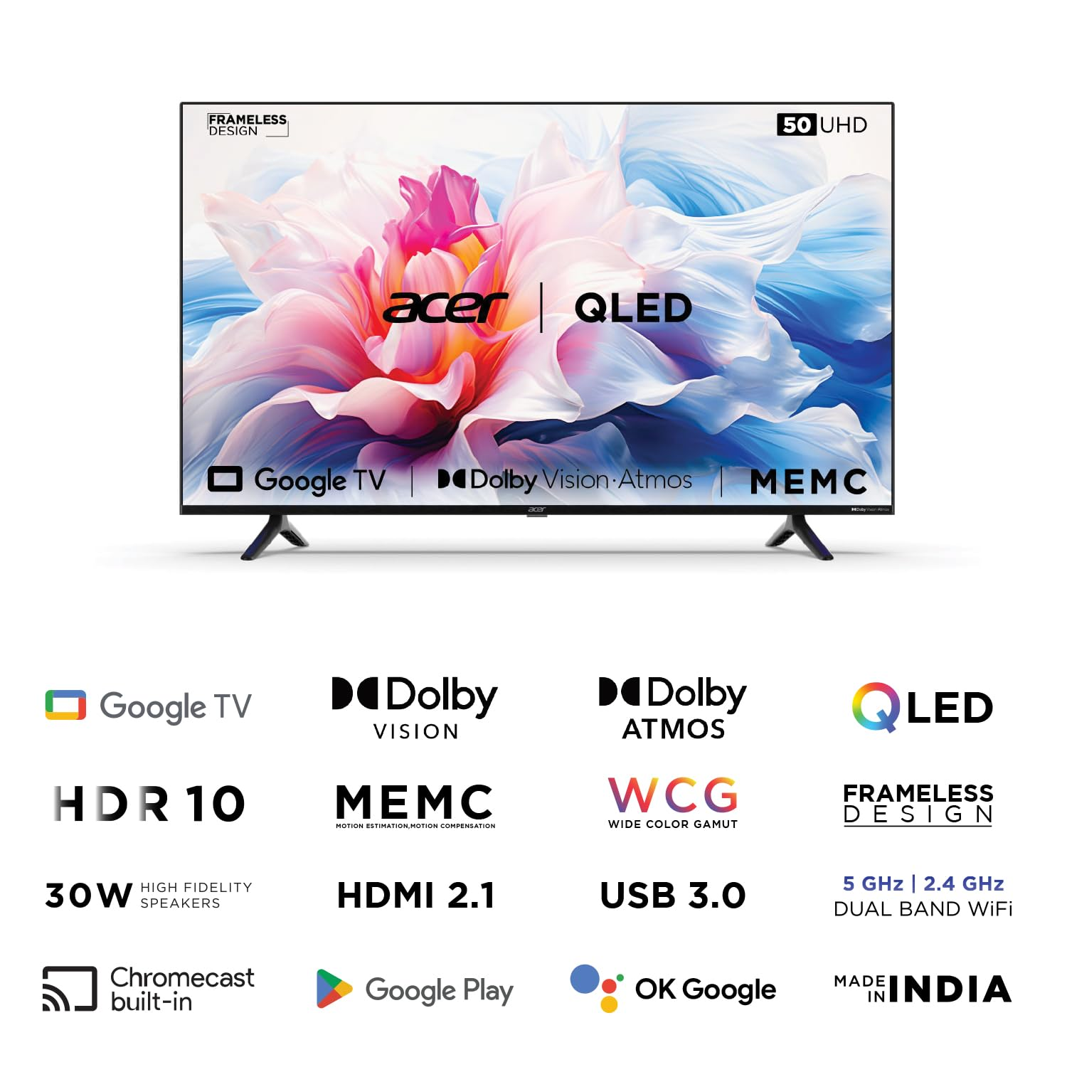 Acer 126 cm (50 inches) V Series 4K Ultra HD Smart QLED Google TV AR50GR2851VQD (Black)