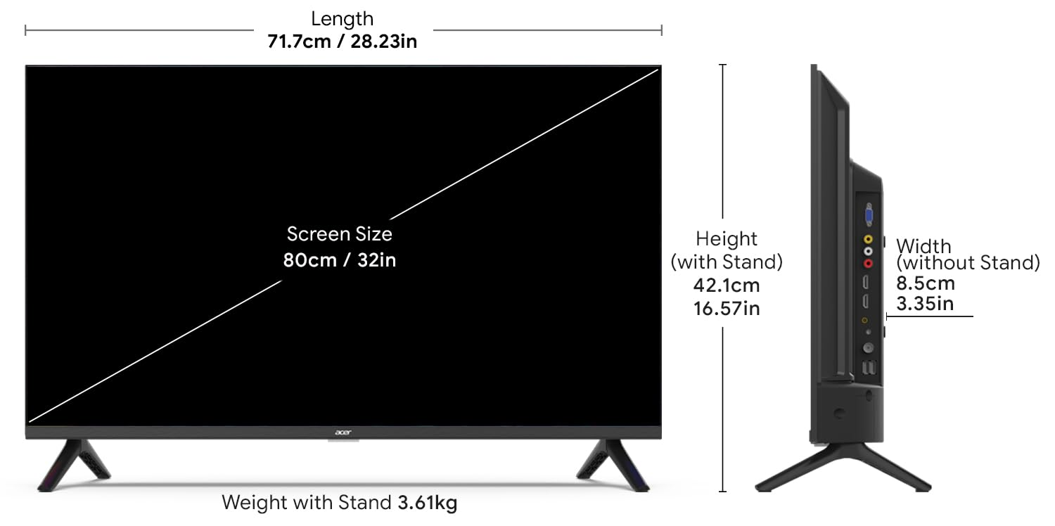 • Resolution & Display: HD (1366 x 768), 178° wide viewing angle, VA A+ panel