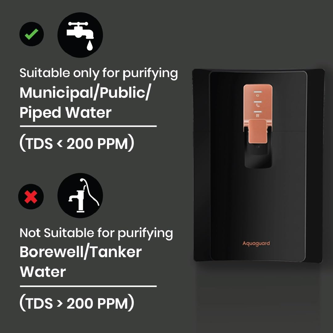 • TDS up to 200ppm (not suitable for borewell or tanker water)
