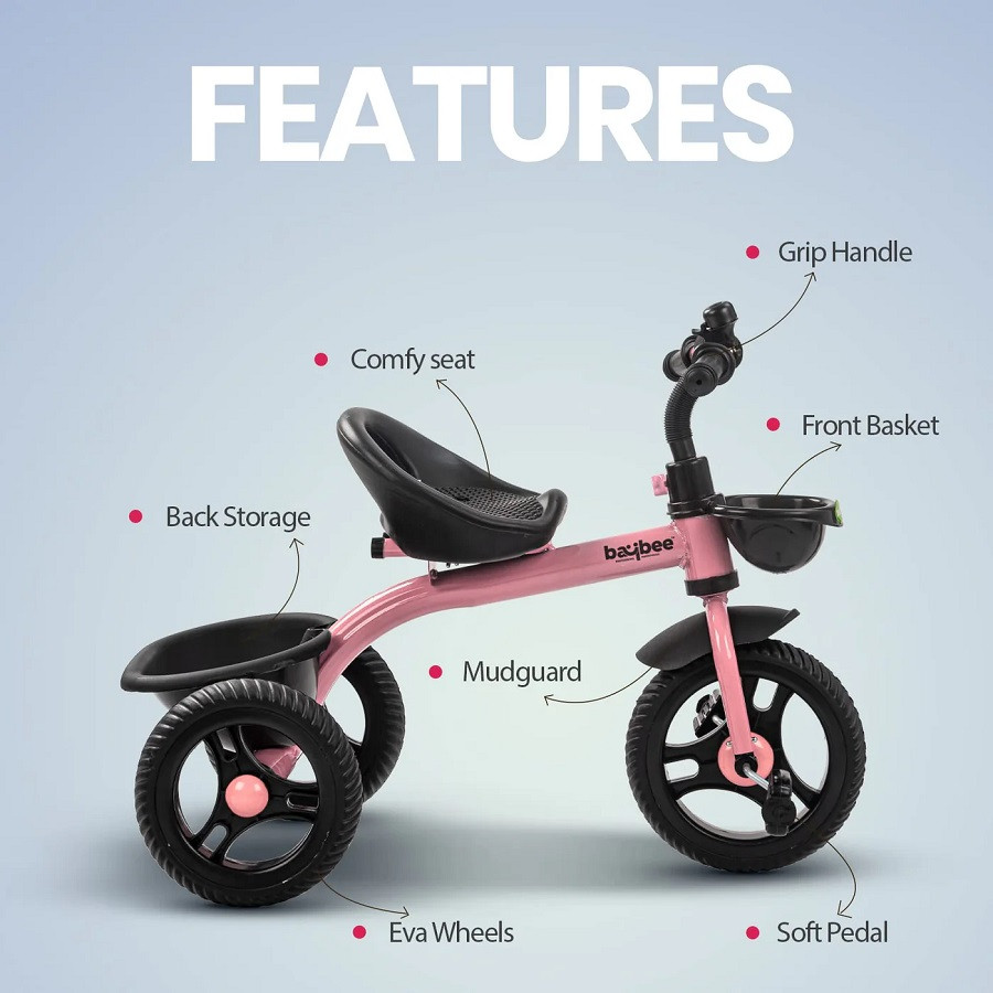 Baybee Baby Tricycle for Kids ( R- 001ST) | Grip Handle | Eva Wheels | Storage basket | 2024 Model