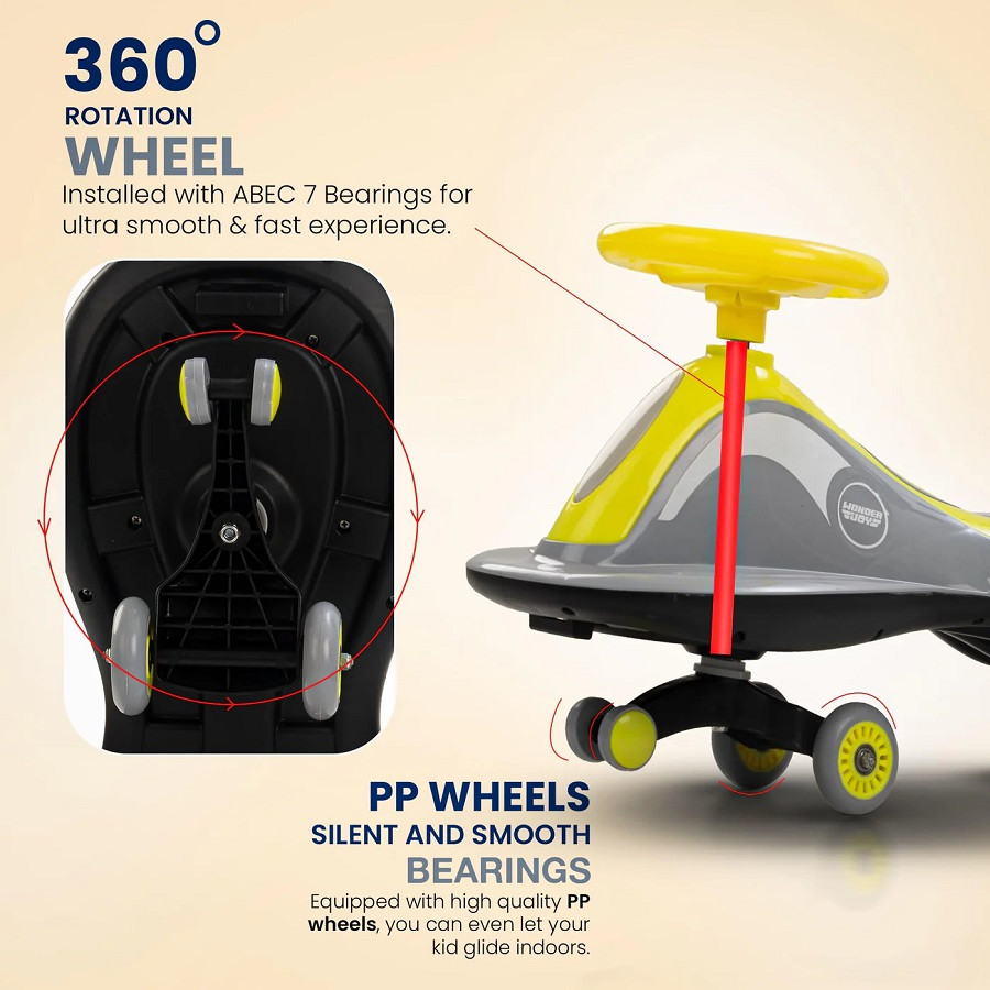Baybee Pluto Magic Swing Car For Kids (3-8 Years) ( WJ-08) | 360° Steering | Music & PU LED Wheels | 2024 Models
