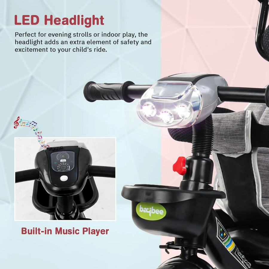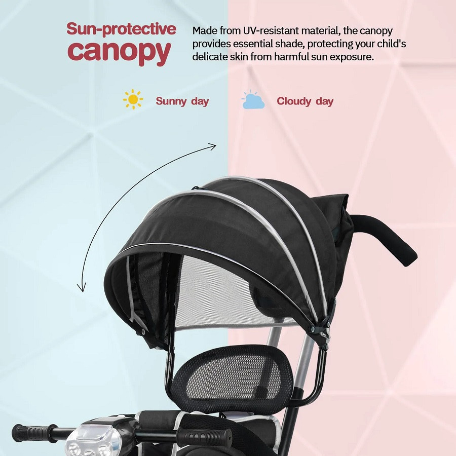 Baybee Klinto 2 in 1 Baby Tricycle for Kids ( TC- 530 ) | Parental Control | Canopy | Rubber Wheels & Safety guardrail | 2024 Model