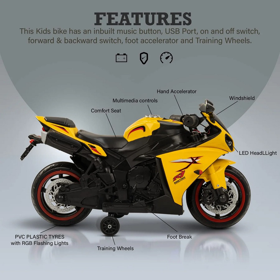Baybee R7 Battery Operated Bike for Kids (MB 121 )| Hand Accelerator & Foot Break | 2024 Model