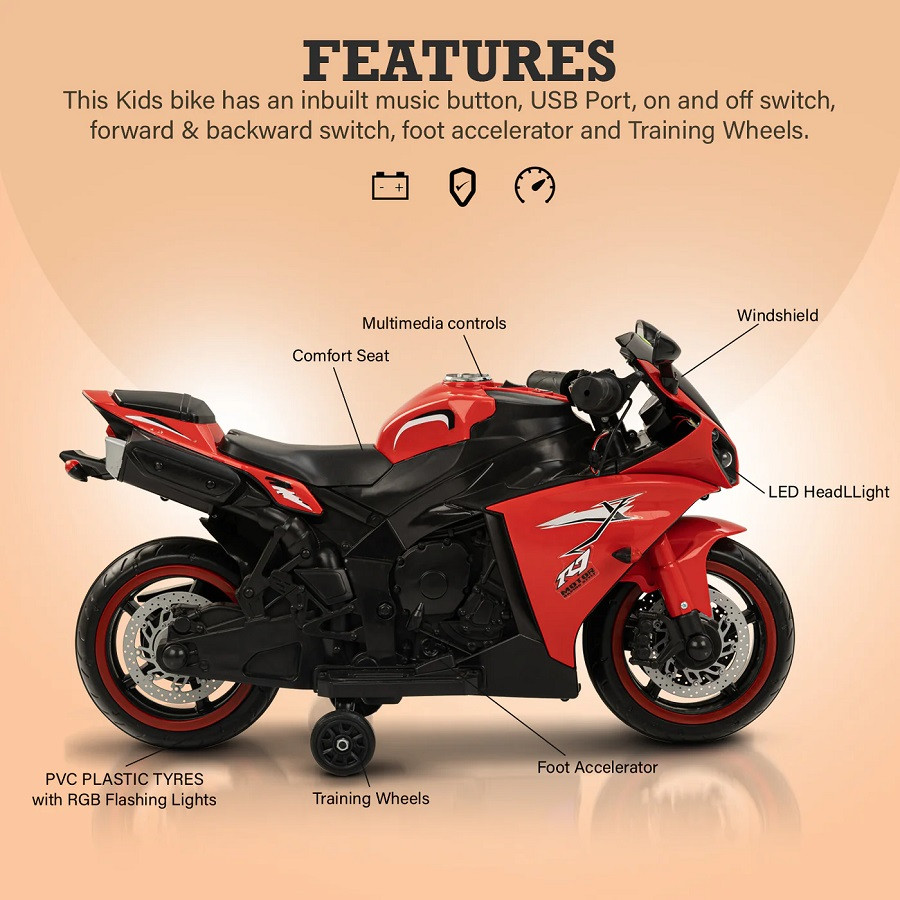 Baybee R7 Battery Operated Bike for Kids (MB 121A )(Age 1 To 3) | Foot Accelerator | 2024 Model
