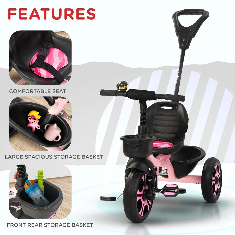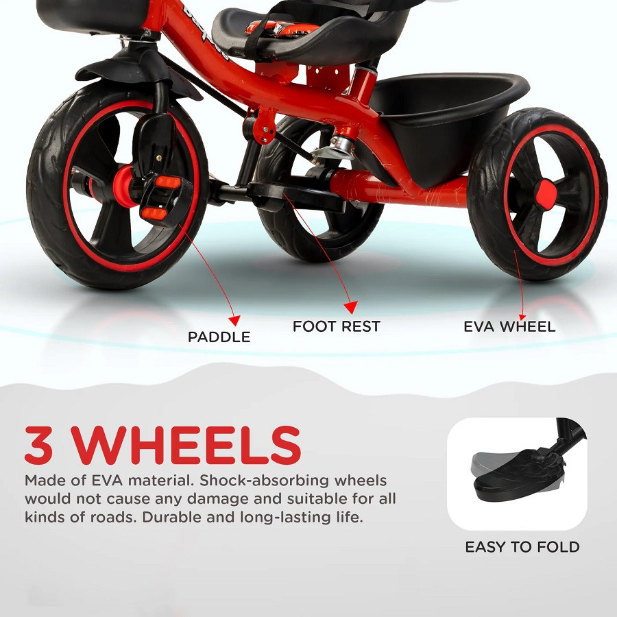 Baybee Terra Pro Baby Tricycle for Kids ( 2-5 Years ) ( BB- 104) | Parental Push Handle | 2024 Model