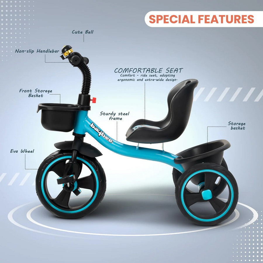 Baybee TRIGX Baby Tricycle for Kids (2-5 years) ( BB-103 ) | Eva Wheels | Bell, Dual Baskets | High Backrest & Cushion | 2024 Model