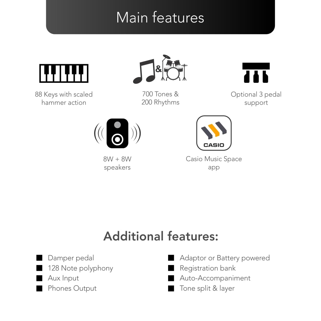 Casio CDP-S360BK (KP81) | Beginner's Piano with Scaled Hammer Action | Duet Mode and Midi support | Black