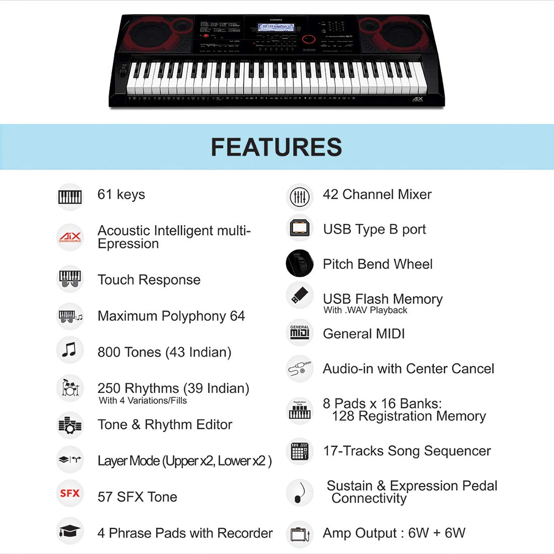 Casio CT-X8000IN | 61-Key Portable Keyboard | Black