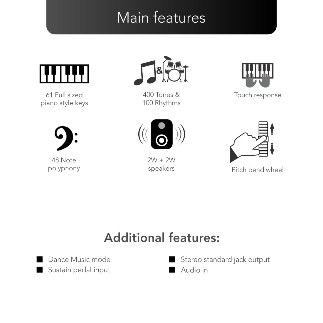 • 400 Tones & 100 Rhythms: Wide variety of sounds