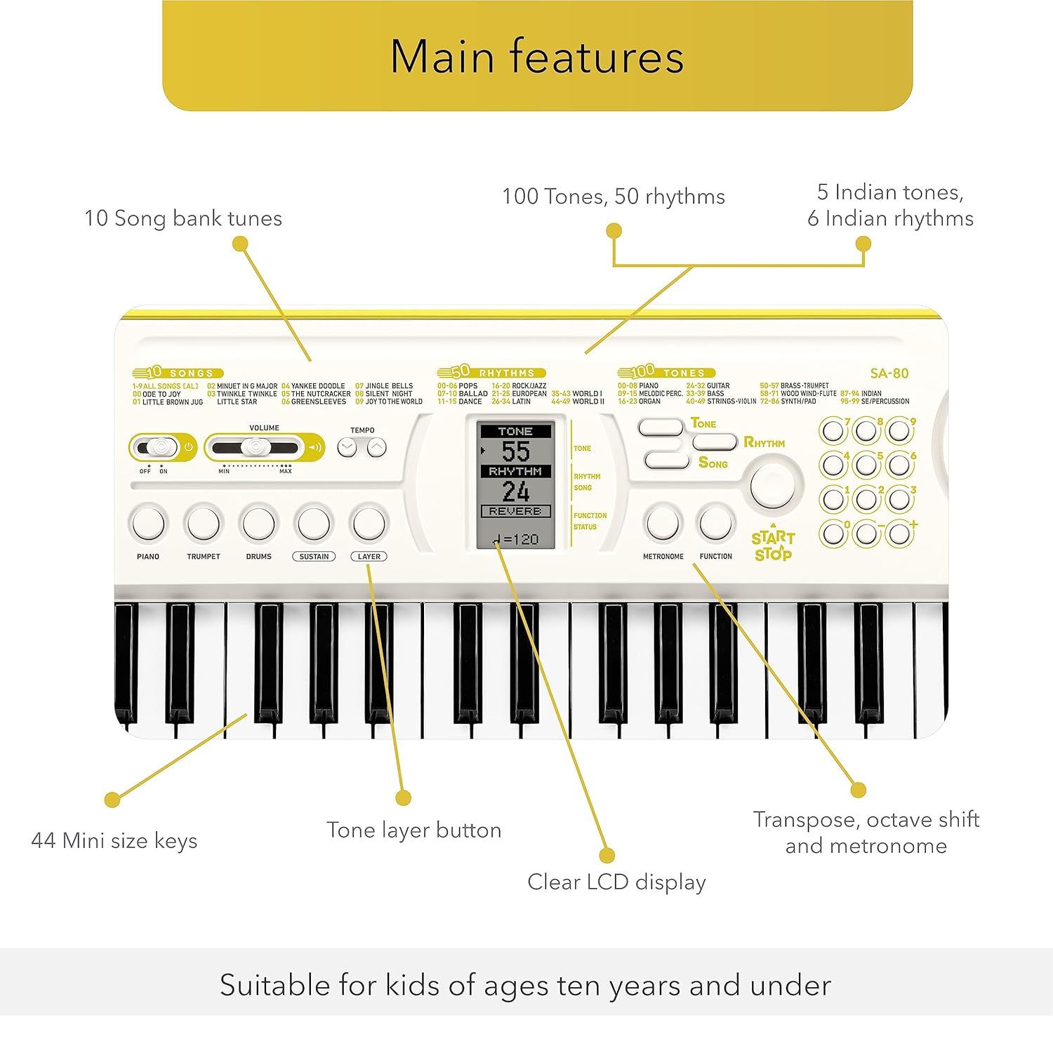Casio Mini Keyboard SA-80 with Adaptor | White