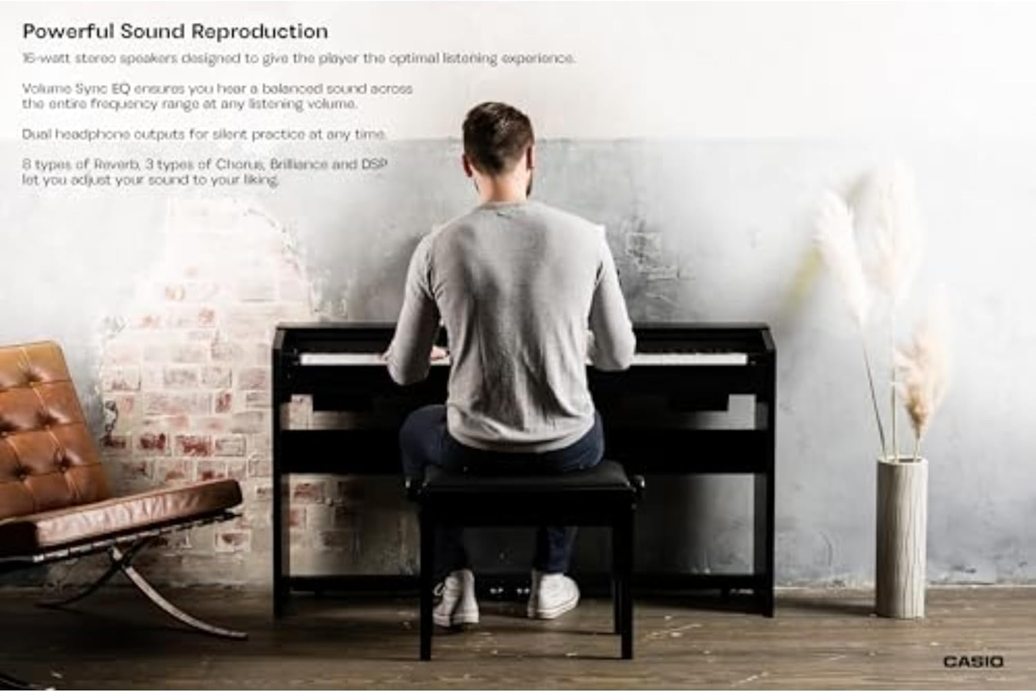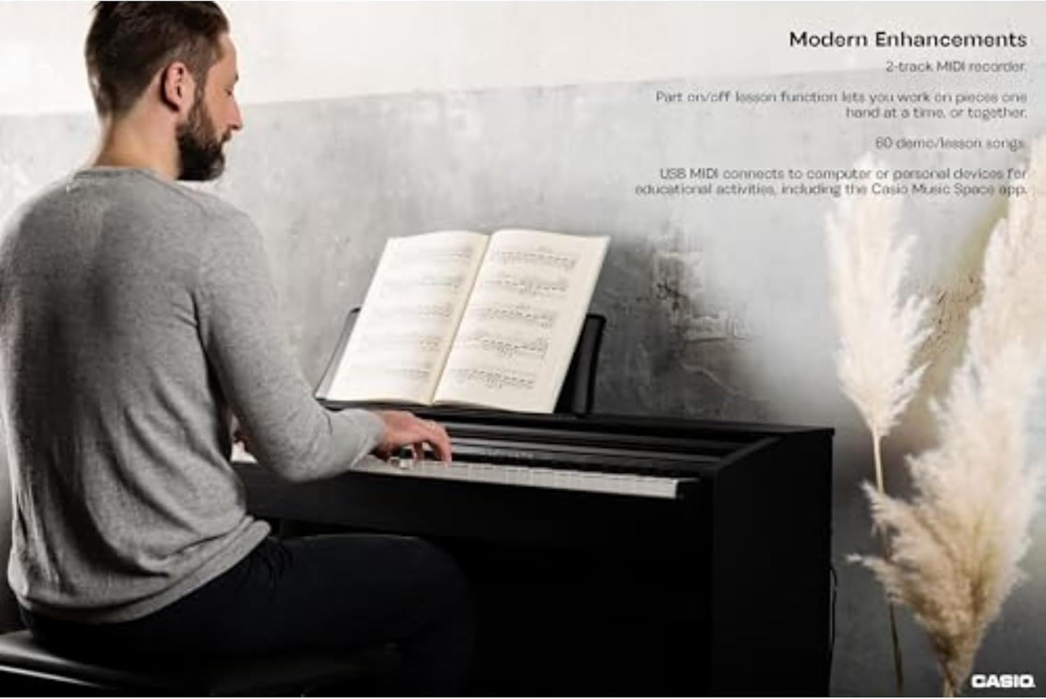 • 88 scaled, weighted hammer-action keys with simulated ebony and ivory textures