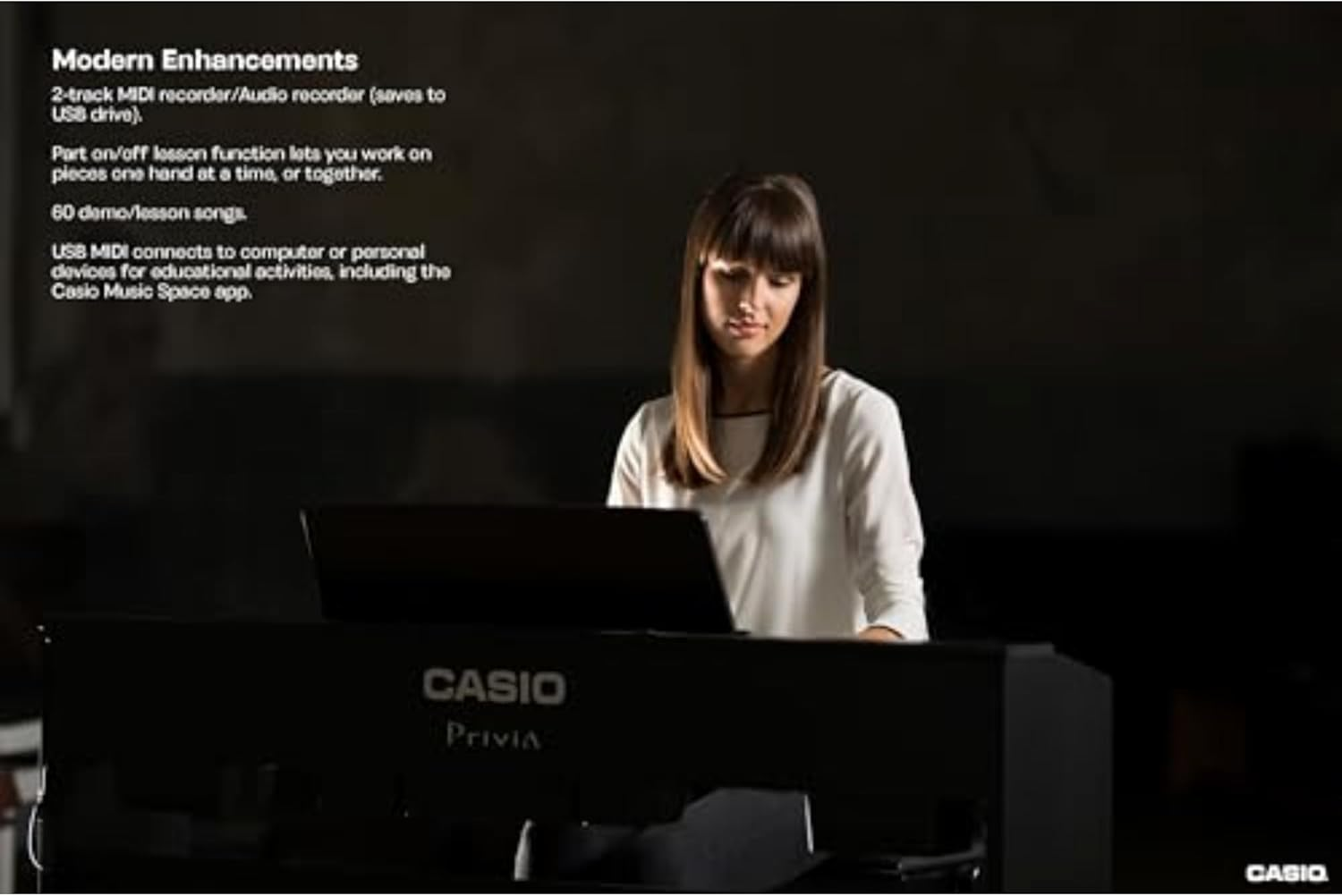 • Class-compliant USB connectivity allows the piano to be used with a Mac or Windows computer without the need to download drivers