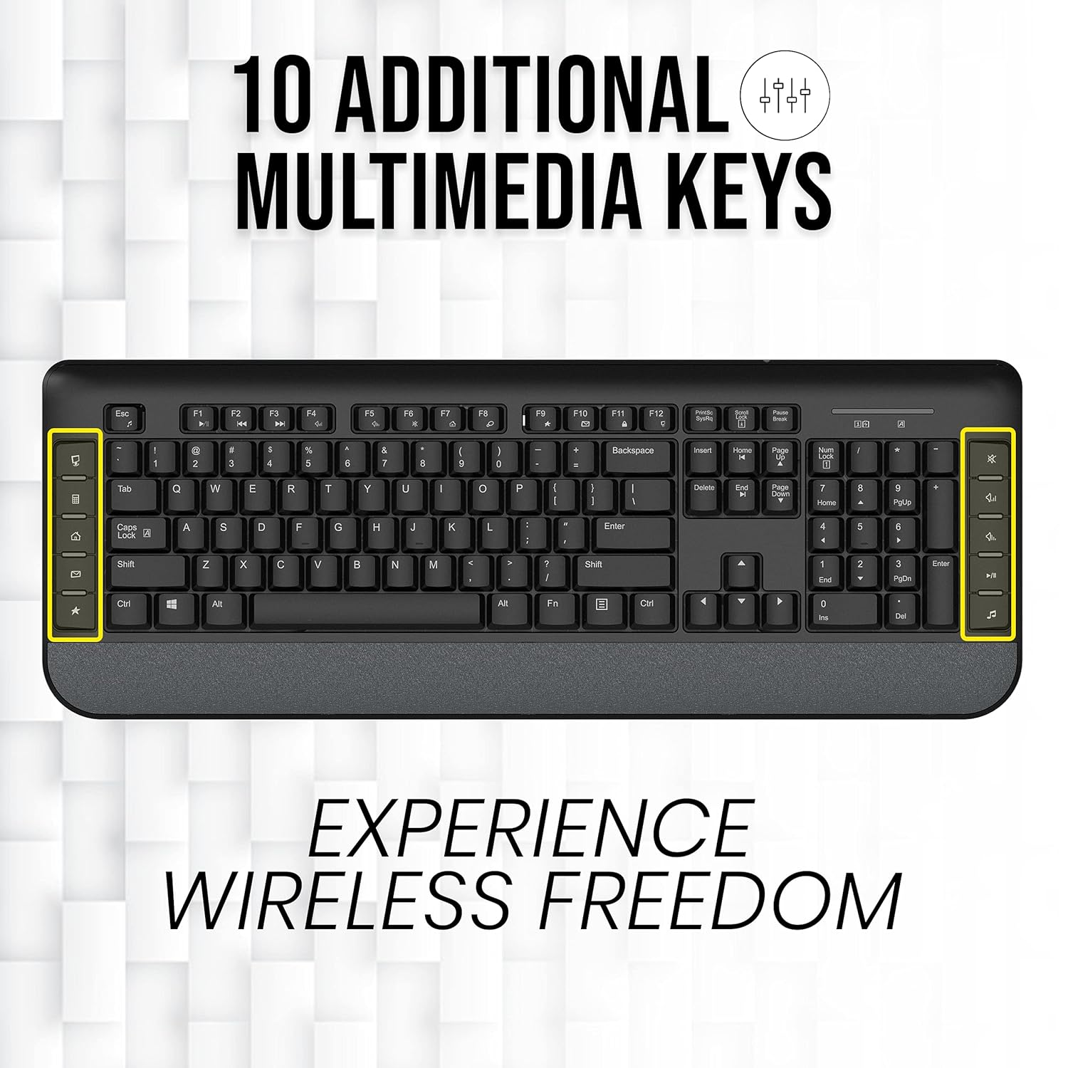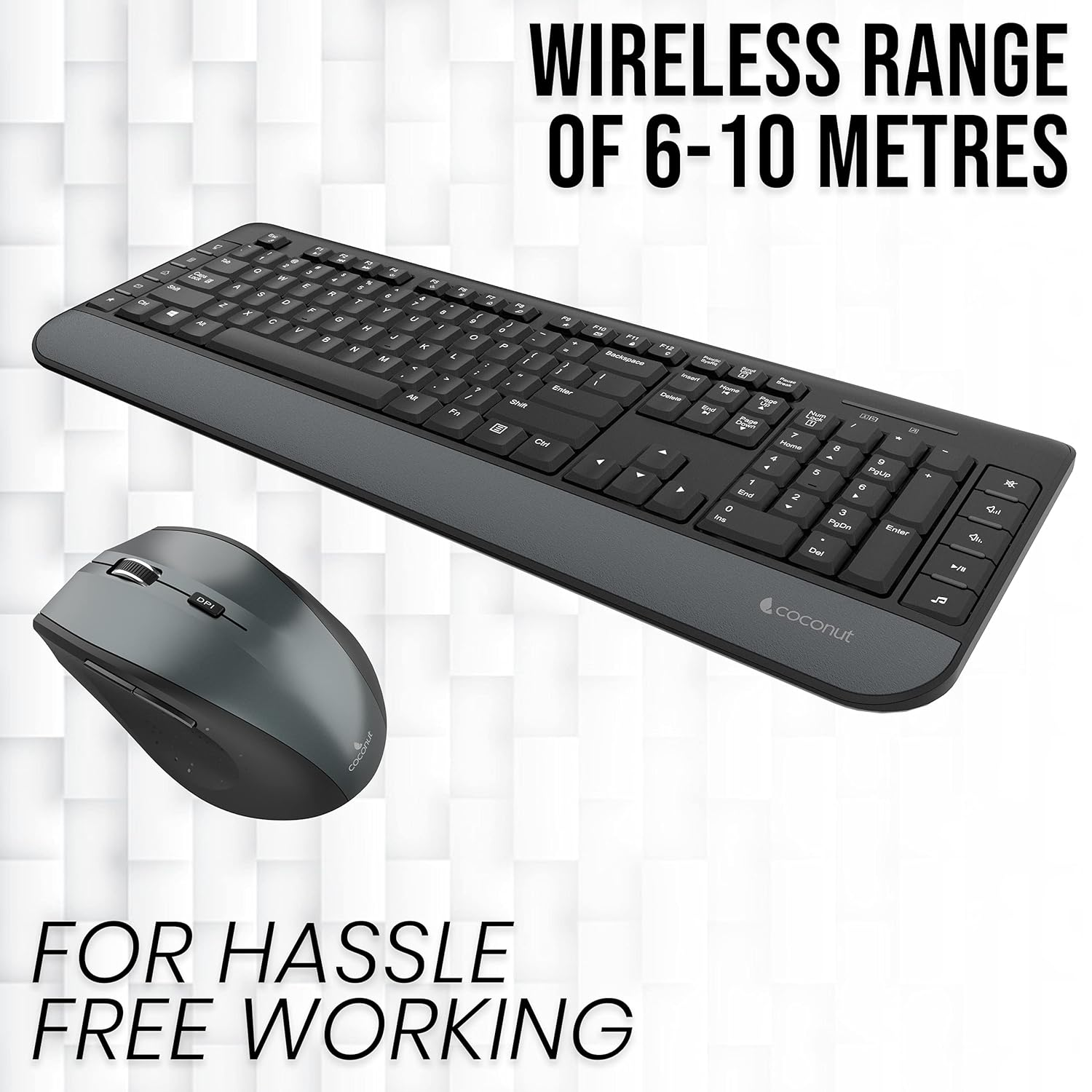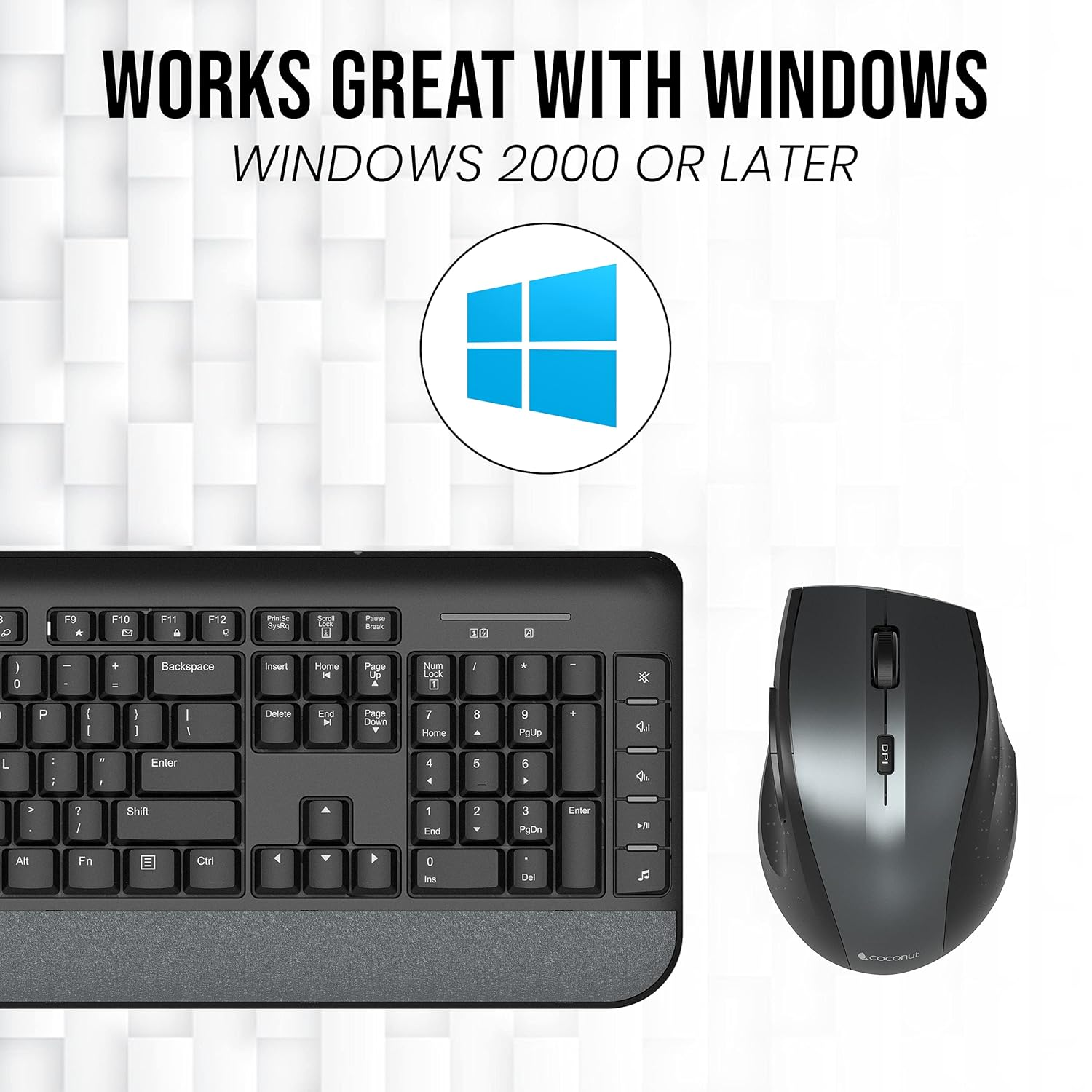 Coconut WKM17 Marvel Wireless Keyboard and Mouse Combo for Windows, 2.4Ghz Wireless Range 6-10M, Full Sized Keyboard with 10 Multimedia Keys Palm Rest, 6 Button Mouse DPI Upto 1600, PC/Laptop