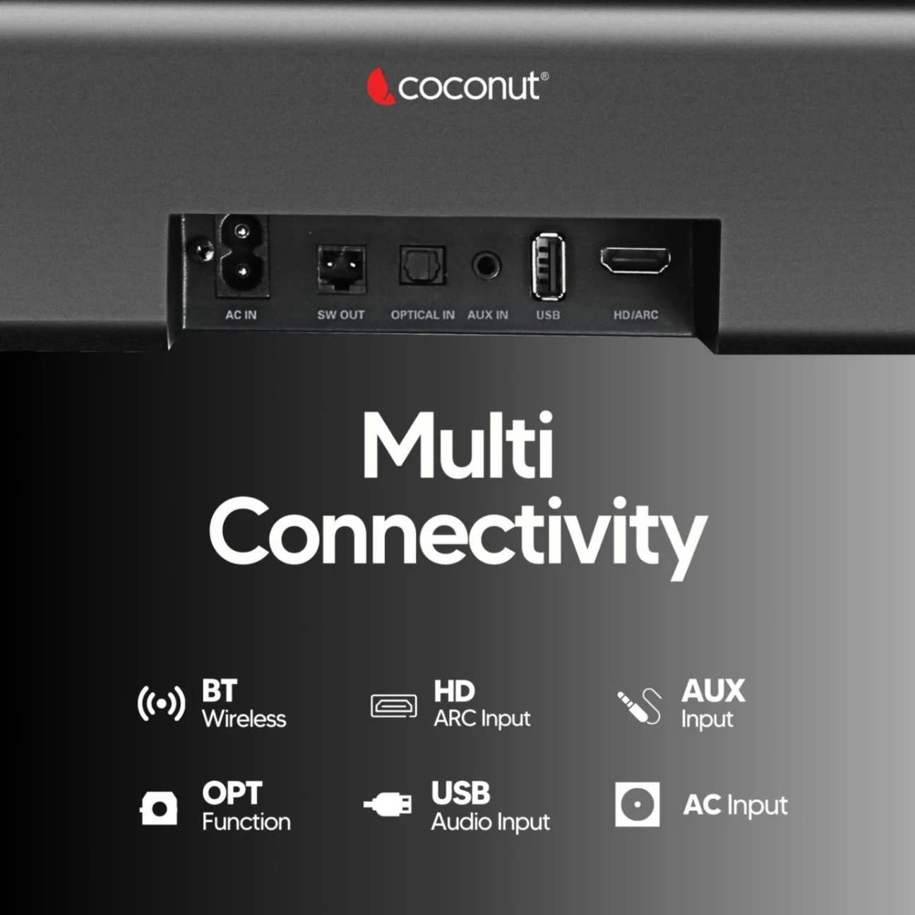 • 120W Total Output: 60W Sound Bar for clear sound and 60W Subwoofer for deep bass.