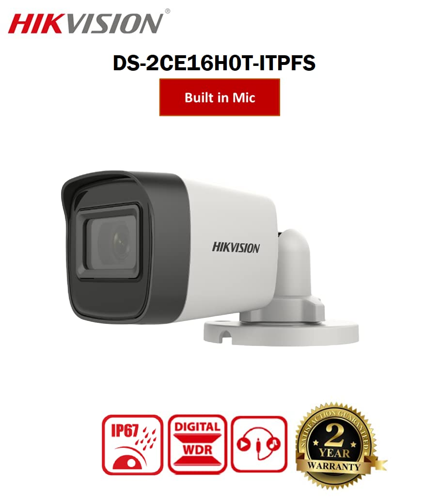 • HIKVISION 5MP Outdoor CCTV Camera: Features built-in audio mic.