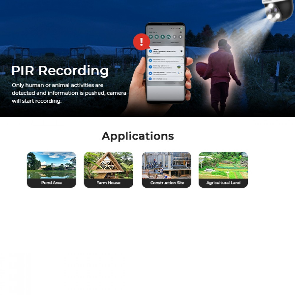 • Support PIR Recording Only (when battery is below 50%; recording only when PIR sensor is detected)