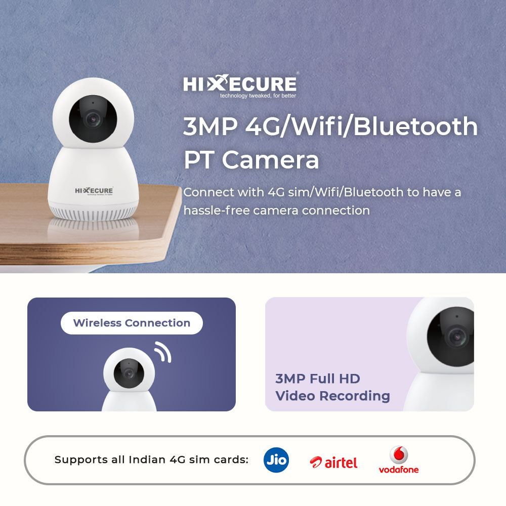 HIXECURE 3MP 4G/WIFI PT Indoor Camera - High-Resolution Surveillance with Pan/Tilt, Night Vision, Two-Way Audio, and Motion Detection - Secure Cloud & Local Storage - Ideal for Home and Office