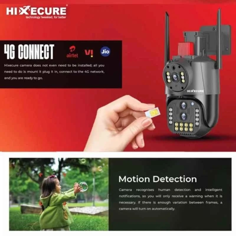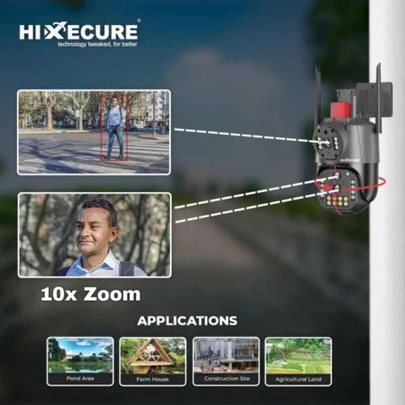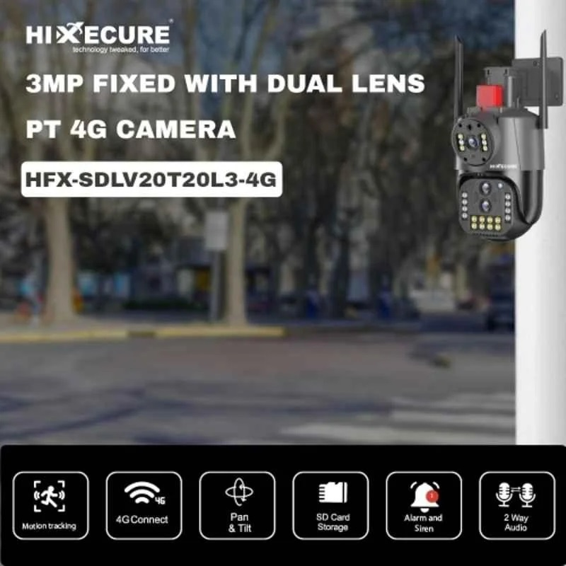 HiXecure HFX-SDLV20T20L3-4G 2MP+2MP Triple Lens PTZ 4G/5G SIM Camera with 10x Zoom, Two Way Audio, Motion Detection & IP66 Waterproof