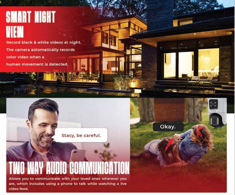 • 2MP+2MP Wi-Fi Based Dual Lens PTZ Camera (4mm+8mm)