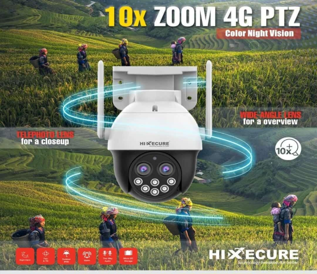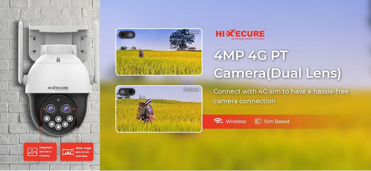 Hixecure Hixcure 4 MP 4G Wireless PT 360 View Camera with 10X Zoom Outdoor with Dual Lense | Built in Mice and Speaker