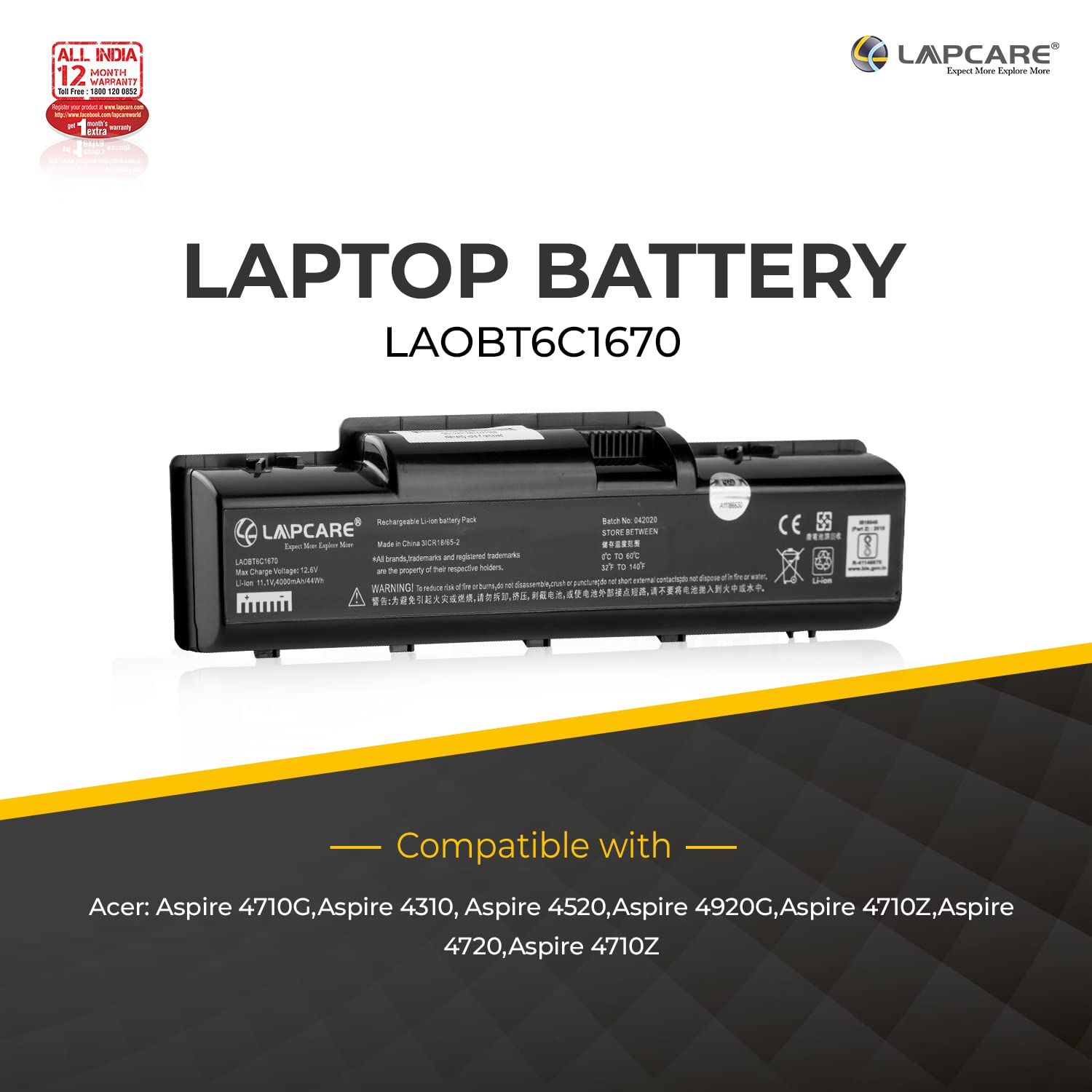 Lapcare 6 Cell Laptop Battery for Acer Aspire 4710, 4720, 4310, 4520, 4736, 5541, 5738G, 5740G, 5535, 4332, 4535G Black