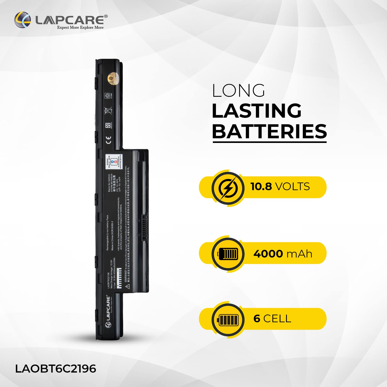 Lapcare 6 Cell Laptop Battery for Acer Part no. AS10D31, AS10D3E, AS10D41, AS10D51, AS10D5E, AS10D61, AS10D71, AS10D73, AS10D75, AS10D7E Black
