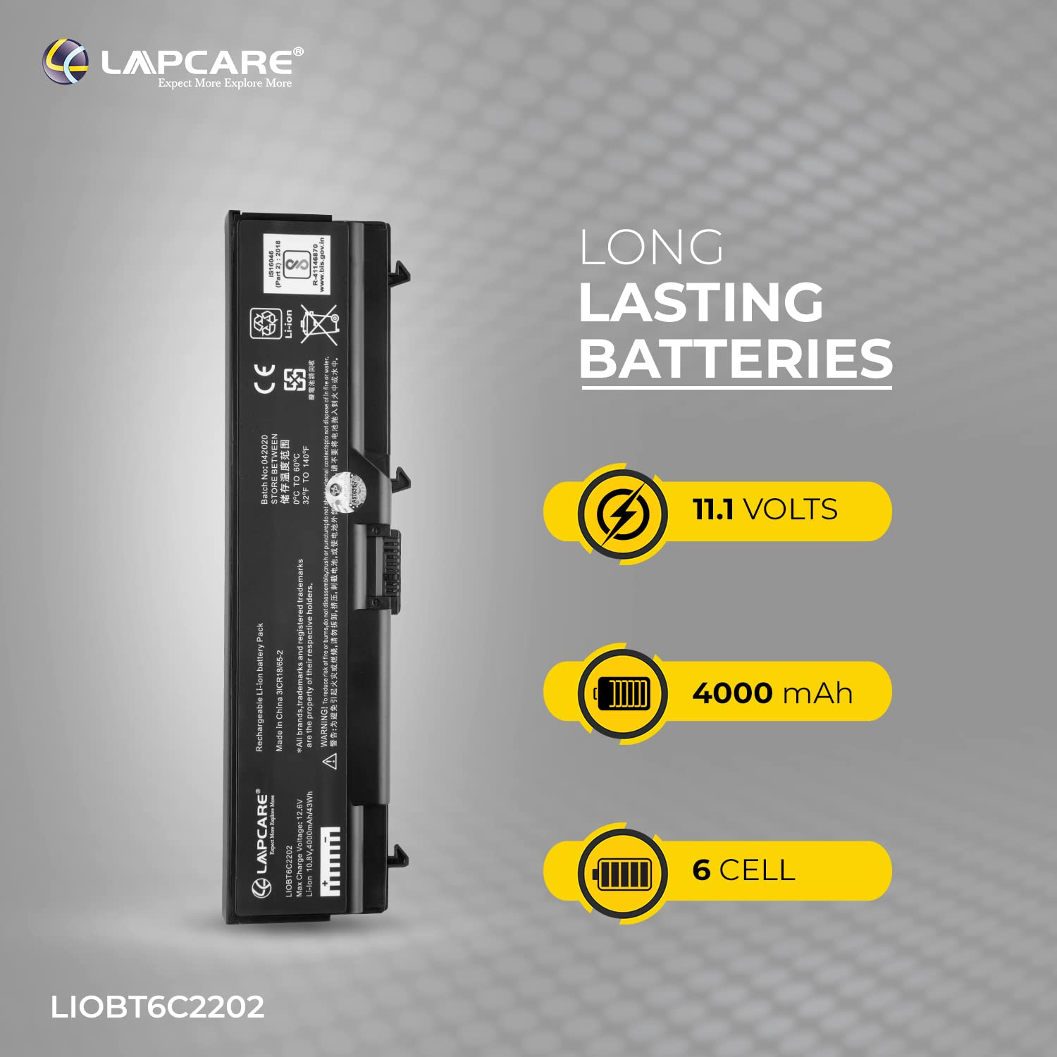 • Cells: 6-cell configuration, designed for longer-lasting power.