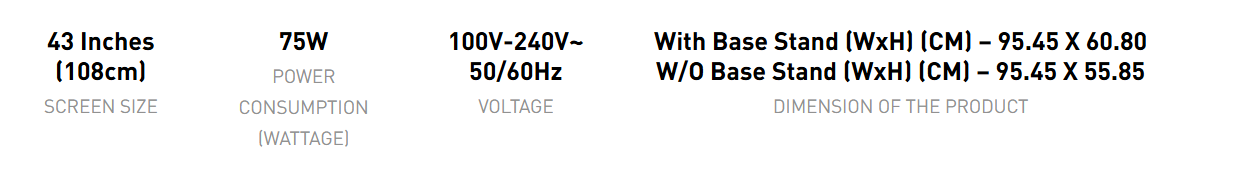 Screen Size43 Inches (108cm)