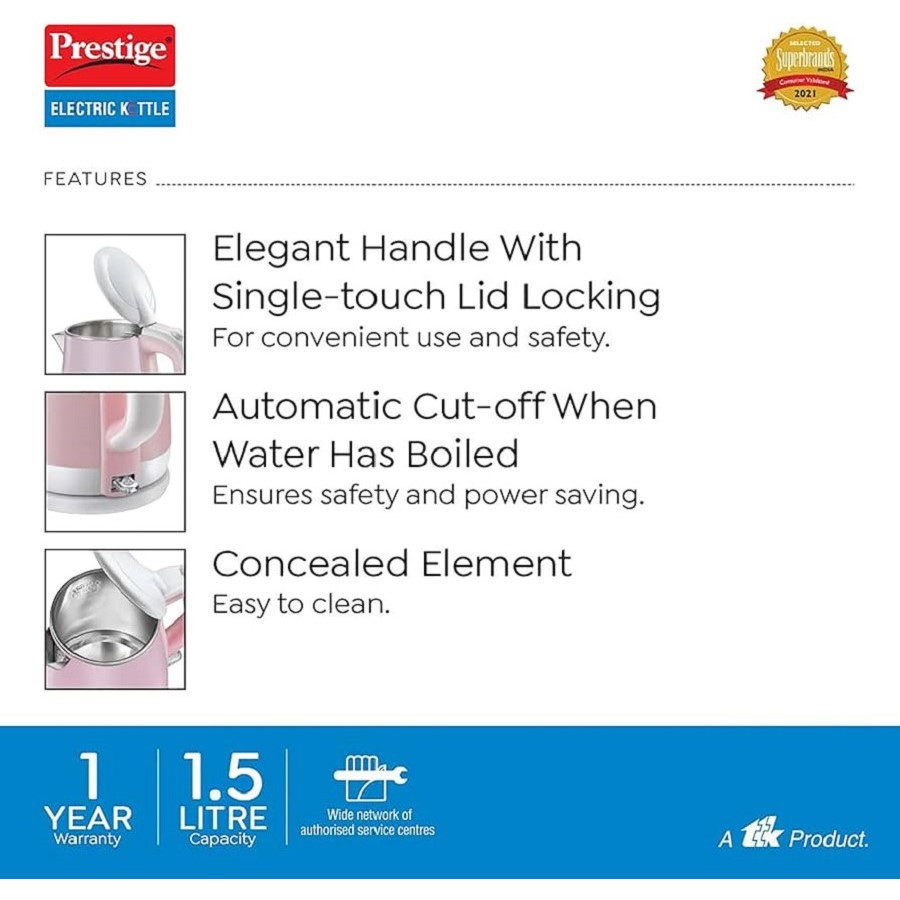 Prestige PKPC 1.5L Electric Pink Kettle 1500W |