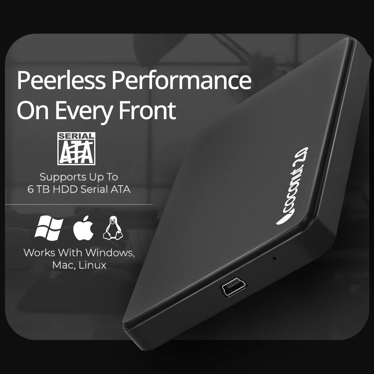 • Up to 6TB Storage: Supports up to 6TB SATA Portable HDD for ample storage.