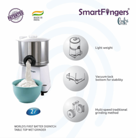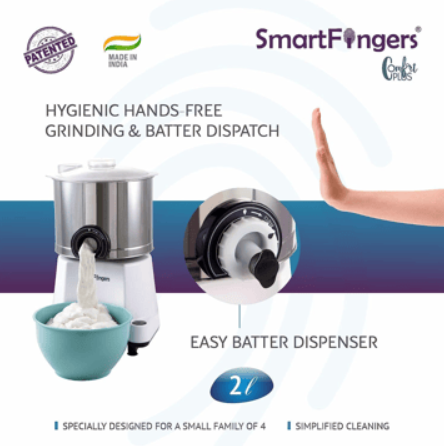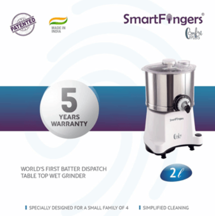 Smart Fingers Comfort Plus Wet Grinder 230 V ( 2 Litre,White ) with Attachments