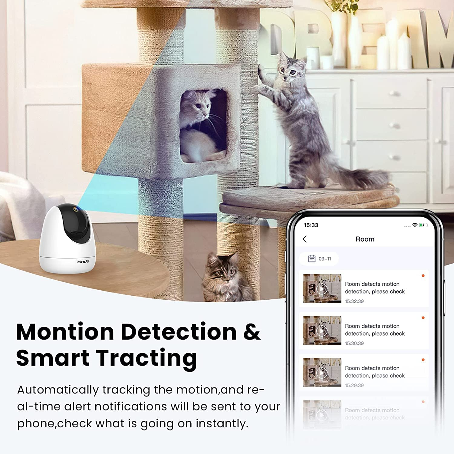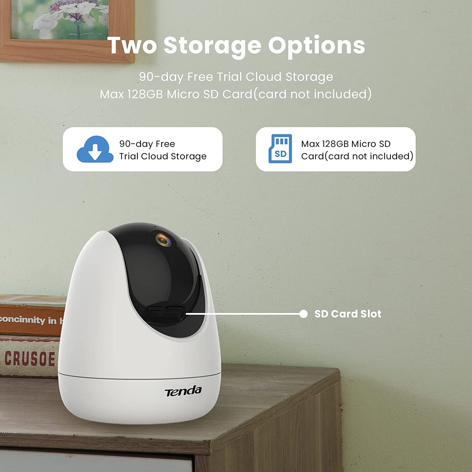 Tenda CP3 Security Pan/Tilt Smart Camera, 360° All-Round Vision, 1080P HD, Motion Detection, Two-Way Audio, Night Vision, Voice Customization, Micro SD Card and Cloud Storage (Wireless)