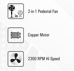 Ultron Black Thunder 2 in 1 16 " 400 mm High Speed Pedestal Fan | 2300Rpm | 120 Watt | Brown