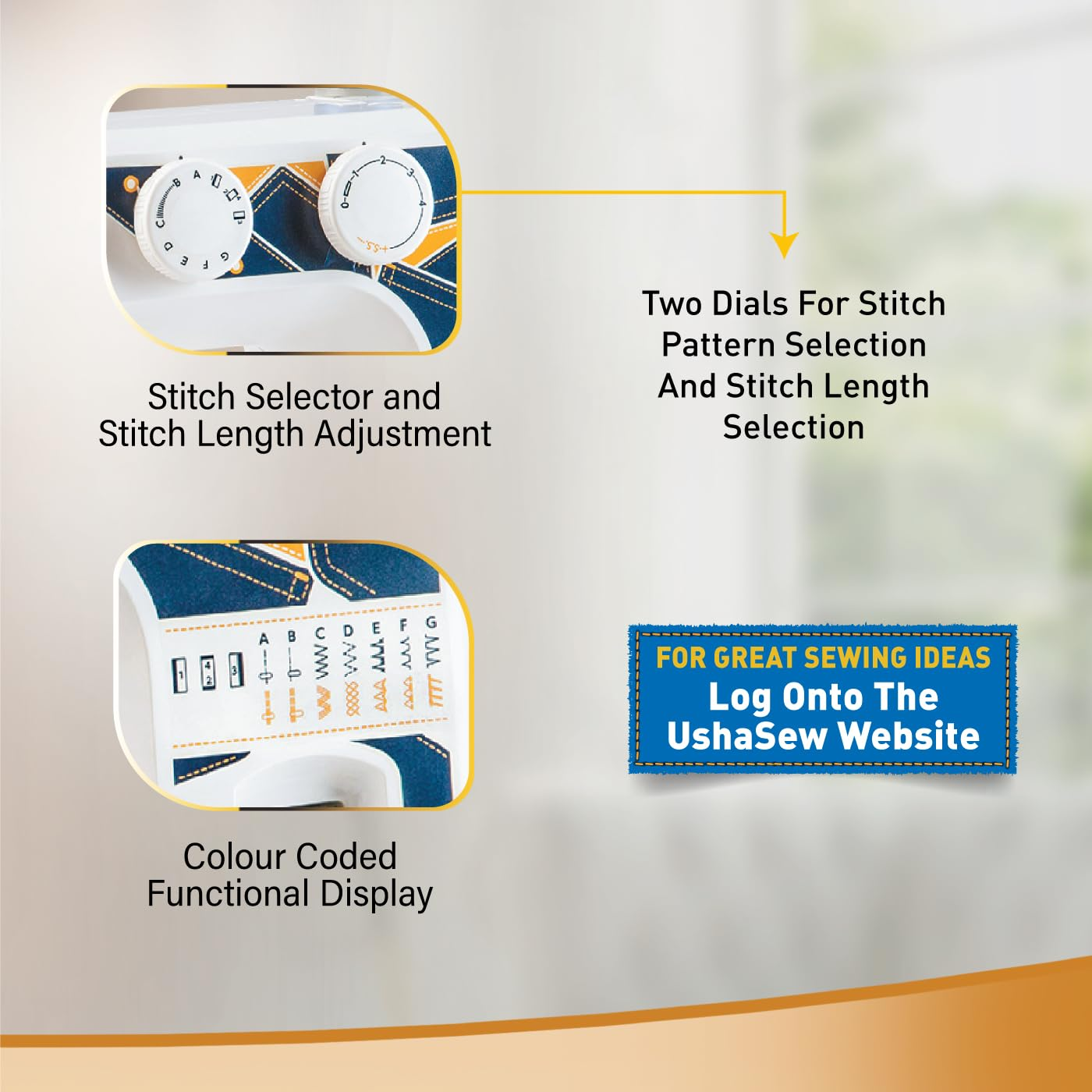 Usha Janome Excella DLX Automatic Zig-Zag Electric Sewing Machine || 13 Built-In-Stitches || 21 Stitch Function (White & Blue) with complementary Sewing Lessons in Nine languages