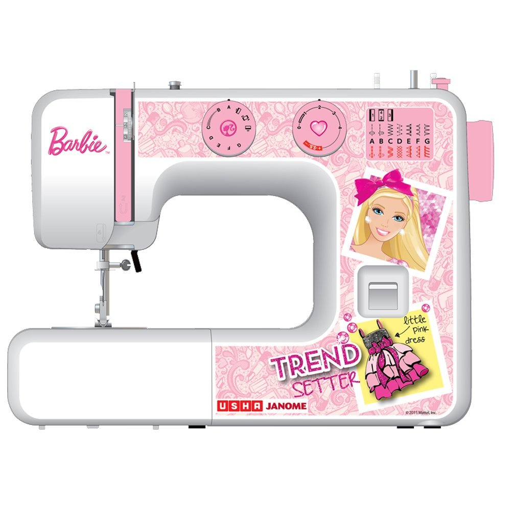 Usha Janome My Fab Barbie Automatic Zig-Zag Electric Sewing Machine || 13 Built-In-Stitches || 21 Stitch Function (White & Pink) with complementary Sewing Lessons in Nine languages