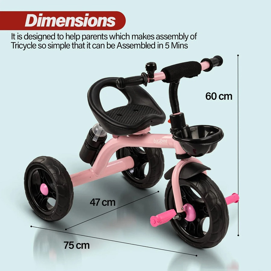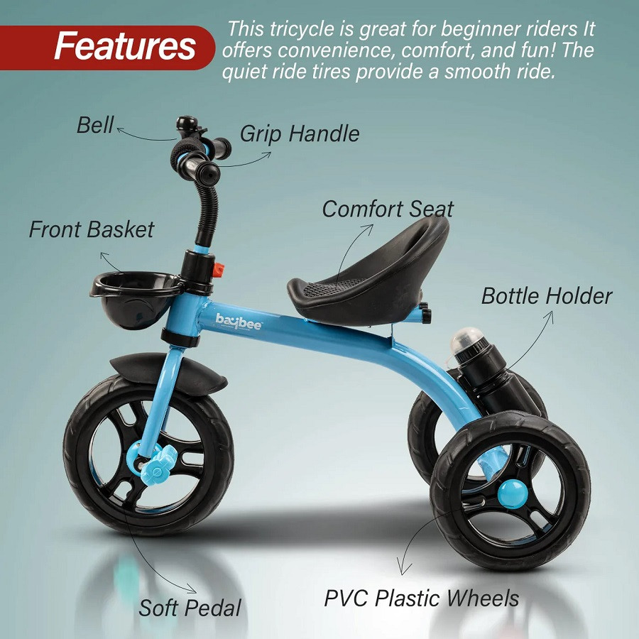 Baybee Maze Tricycle for Kids ( R-002SB) | Height Adjustable | Eva Wheels | Storage Basket & Water Bottle | 2024 Model|