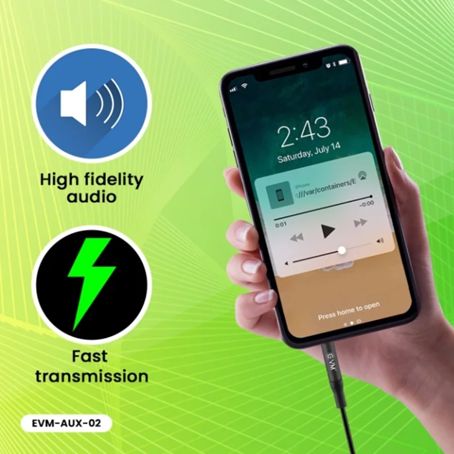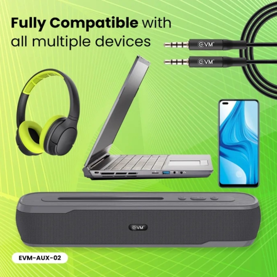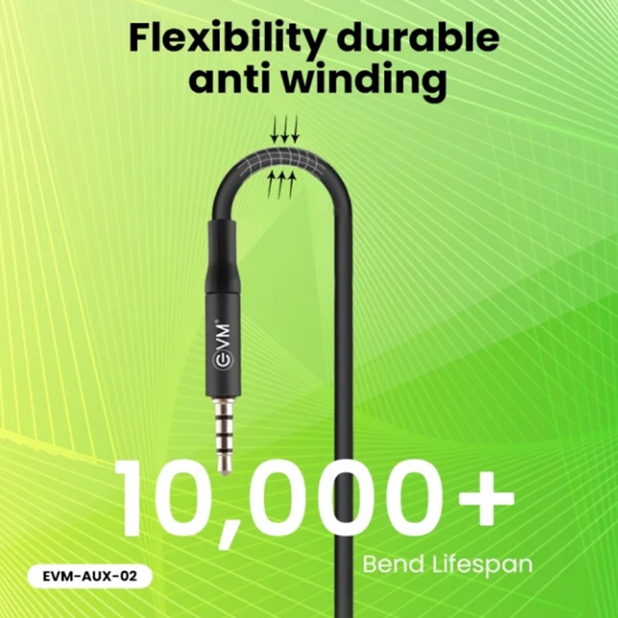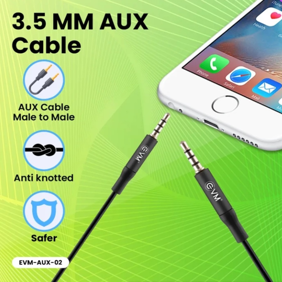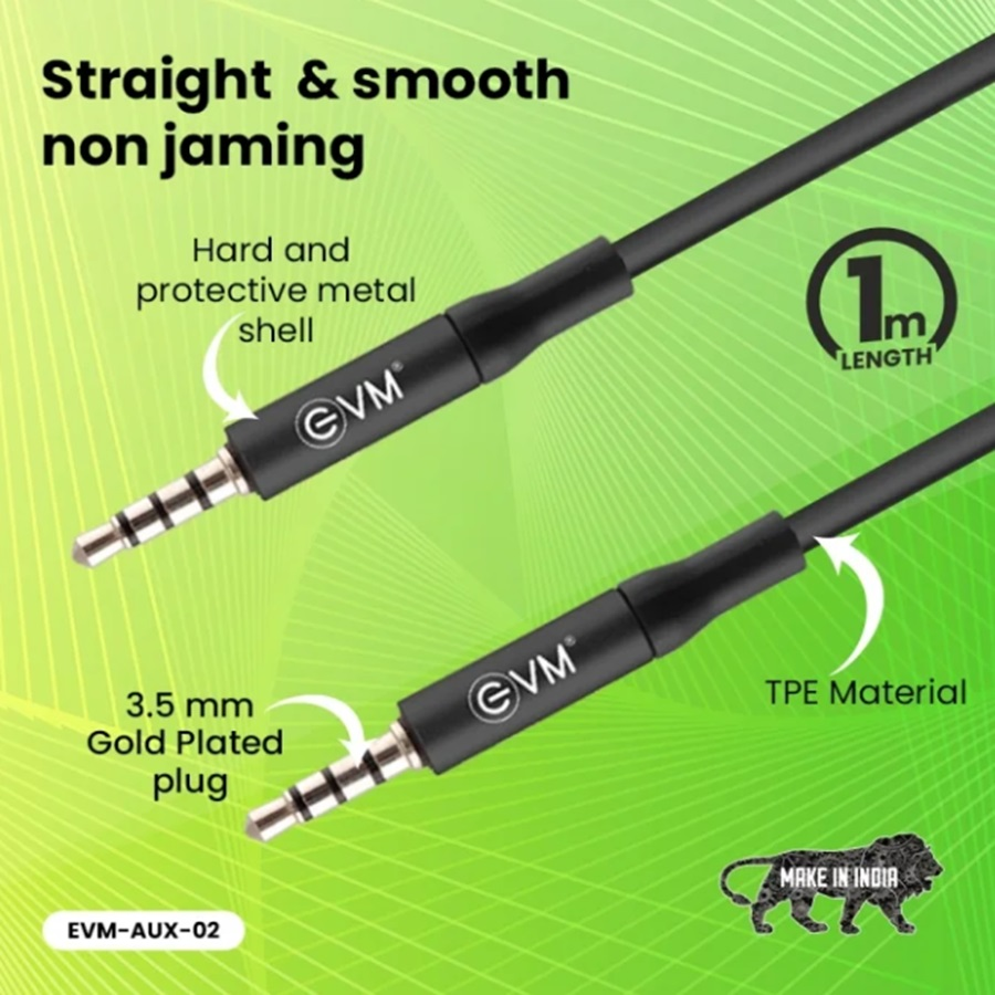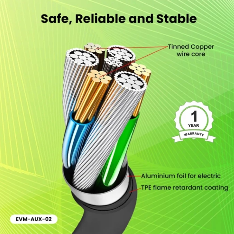 EVM Audio Cable - 3.5mm AUX Cable with Gold Plated Plug 1m Long Cable- Flexible, Durable, Anti-Winding & Fast Transmission - Compatible with Tablet, Mobile, & Gaming Consoles - 1 Year Warranty (EVM-AU